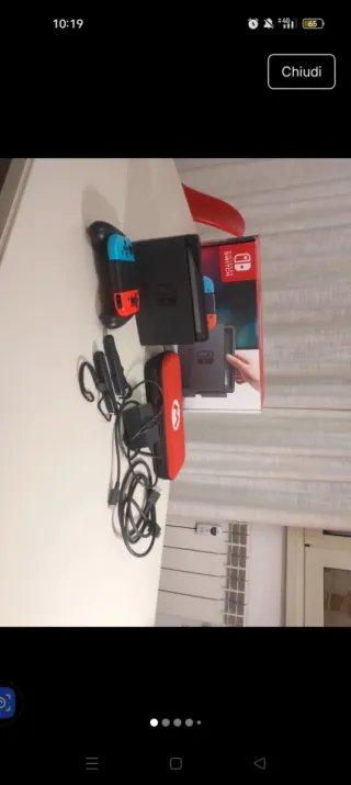 Vendo console Nintendo Switch completa di accessori. - Joy-Con blu e rossi - Dock per TV - Cavi e alimentatore - Custodia rossa per trasporto La console manca dell'appoggio retrostante, e lo scatolo presenta uno strappo.