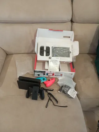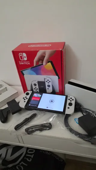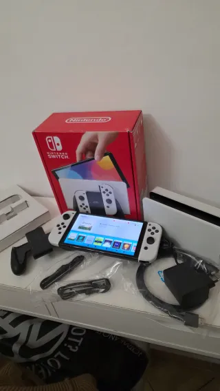 Console Nintendo Switch OLED in ottime condizioni, completa di tutti gli accessori originali. - Console Nintendo Switch OLED - Joy-Con (L) e Joy-Con (R) - Dock Nintendo Switch - Cavo HDMI - Adattatore CA Nintendo Switch - Impugnatura per Joy-Con - Fascette per Joy-Con - Manuale utente - caricatore -memoria sd da 128 gia programmata con hekate