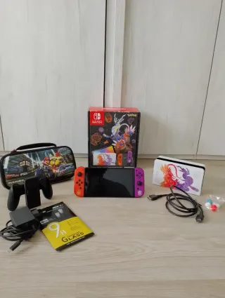 Console in condizioni buone estetiche, si collega alla TV grazie alla dock station, vi basta un cavo HDMI e un alimentatore abbastanza potente con cui usare il cavo USB Type C incluso nella vendita. La console presenta qualche problema al touch screen, che a volte sembra essere iper sensibile e rilevare tocchi che non ci sono, risultando difficile utilizzarla in portabilità. I joycons funzionano, ma presentano problemi di drift.