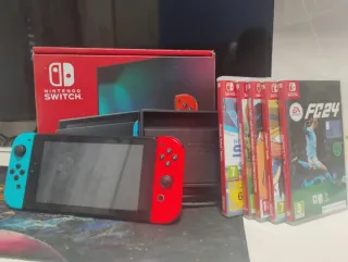 Console Nintendo Switch con Joy-Con rossi e blu. - Console Nintendo Switch - Joy-Con sinistro (blu) - Joy-Con destro (rosso) - Dock per Nintendo Switch - Cavi necessari - Giochi inclusi: FC 24, Grand Theft Auto: The Trilogy - The Definitive Edition, Pokémon Spada, Spyro Reignited Trilogy