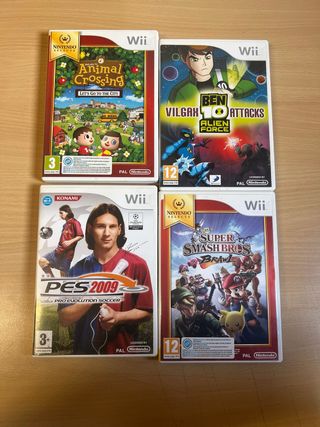 Set di quattro videogiochi per Nintendo Wii. - Animal Crossing: Let's Go to the City - PES 2009: Pro Evolution Soccer - Ben 10: Alien Force Vilgax Attacks - Super Smash Bros. Brawl