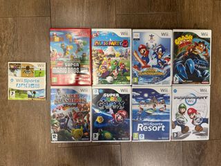 Set di sette videogiochi per Nintendo Wii, il party e Mario Kart sono un po' graffiati ma funzionano