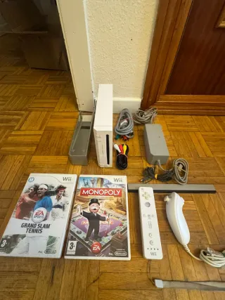 -Console Nintendo Wii Con tutti i cavi necessari, cavo di alimentazione, cavo TV e sensore di movimento. -Un controller Wii con cinturino anti-caduta. -Include supporto per la console. -Giochi: +Wii Play (Più di 12 giochi familiari e super divertenti di ogni tipo). +Game Party (7 giochi classici e familiari, freccette, quiz e molti altri. +Animal Crossing. -Prezzo non negoziabile, già abbastanza economico. -Per qualsiasi domanda, non esitare a contattarmi tramite chat Wallapop.