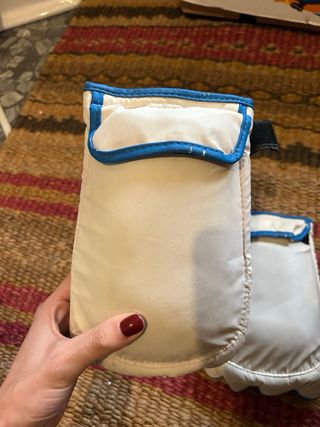 Coppia di guantoni per Nintendo Wii. - Colore bianco con bordi blu. - Chiusura a strappo. difetti in foto