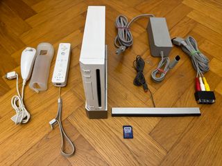 Wii completa, con 4 controller originali (2 completi di motion plus e joystick) più 1 non originale, una memoria SD da 2 GB, la balance board come nuova e 5 giochi origiali (i 4 in foto + wii sports). La console ha installato un firmware che permette l'esecuzione dei giochi da HD esterno, inoltre sono installate varie applicazioni di terze parti. Quando è stata utilizzata l'ultima volta funzionava perfettamente ma si vende come vista e piaciuta, Come si vede in alcune foto le plastiche di alcuni controller sono ingiallite e alcuni joystick presentano segni di usura.