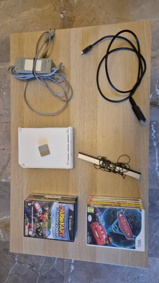 Vendo console Nintendo Wii bianca completa di accessori e giochi. - Console Wii - Alimentatore - Cavo AV - Sensore Wii - Mario Kart Double Dash!! (GameCube) - Cars (Wii)