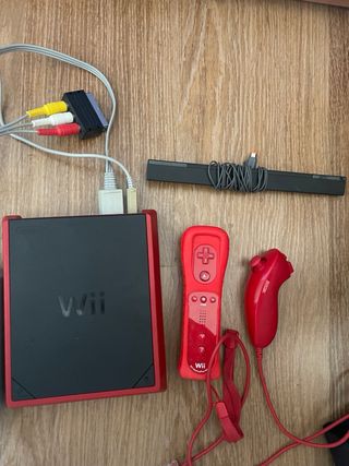 Consola Wii Mini in colore rosso, ideale per godere dei tuoi giochi preferiti. Include il gioco Just Dance 2014, il controller Wii Remote e Nunchuk, la base per la console e l'adattatore di corrente. Si accettano offerte. Possibilità di spedizione. Acquisto separato disponibile.