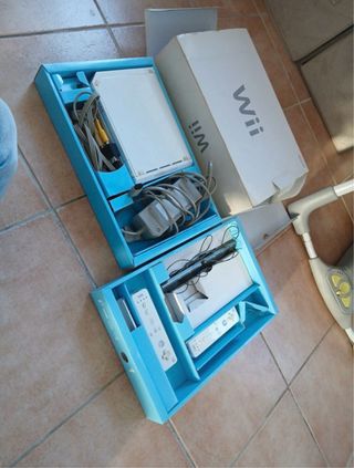 Vendo console Nintendo Wii in bianco, con tutti gli accessori necessari per iniziare a giocare. - Console Wii - Scatola originale - 2 Manette Wii Remote - 2 Manette Nunchuk - Manette Pro Controller - Sensor Bar - Cavi di connessione - Adattatore di corrente - Include scheda SD con software per giocare a copie di backup Console modificata, completamente configurata. Fornita con hard disk Seagate Barracuda da 500Gb, in una custodia esterna Woxter, con giochi di ogni tipo. È possibile includere i giochi di cui hai bisogno. Fornito con nuovo cavo convertitore HDMI (migliore qualità video rispetto al cavo originale).