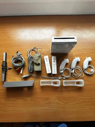 Vendo Nintendo Wii bianca PAL in lotto con base, alimentatore, cavo AV, barra sensore, 2 controller Nunchuk, 2 controller Classic e giochi Mario. Include Mario Kart Wii completo di scatola, manuale e disco, oltre a New Super Mario Bros. Wii e Mario Party 8 in formato disco. Tutto è stato testato e funziona correttamente. Indica la garanzia se offerta. Stato generale buono, con segni normali di utilizzo. Spedizione tramite Wallapop o consegna a mano.