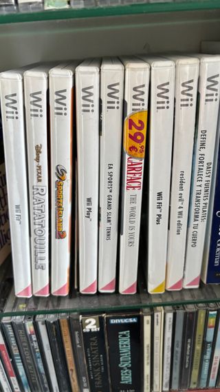Consegna di giochi per Nintendo Wii. Il prezzo varia in base al gioco, in media 10€. - Wii Fit - Ratatouille - Sports Island 2 - Wii Play - EA Sports Grand Slam Tennis - Scarface: The World Is Yours - Wii Fit Plus - Resident Evil 4 Wii Edition - Daisy Fuentes Pilates: Definisci, Rafforza e Trasforma il Tuo Corpo