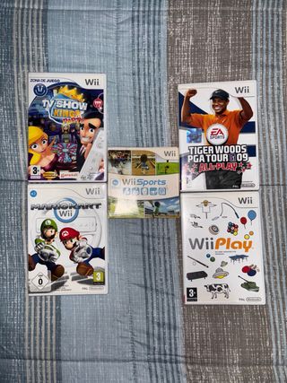 Pacchetto di 5 videogiochi per Nintendo Wii. - Mario Kart Wii - Wii Sports - Wii Play - Tiger Woods PGA Tour 09 All-Play - TV Show King Party