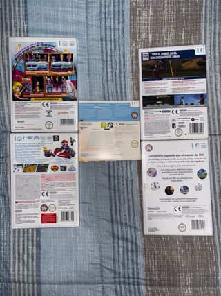 Set di sette videogiochi per Nintendo Wii, il party e Mario Kart sono un po' graffiati ma funzionano