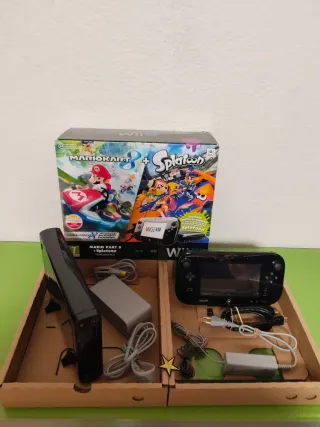 Console Wii U nera edizione Mario Kart e Splatoon. Guarda le foto alla fine, include molti giochi. Zelda, Mario Kart, Super Paper Mario, Mario Maker, Kirby, Wii Sports Resort, Wario, Need for Speed, Pikmin, Nintendoland, Donkey Kong, Yoshi, Peach, Just Dance, Wii Party U, Pokémon, Super Mario Galaxy e molti altri. Altri giochi e accessori nel mio profilo. Faccio prezzi per l'acquisto di più articoli.