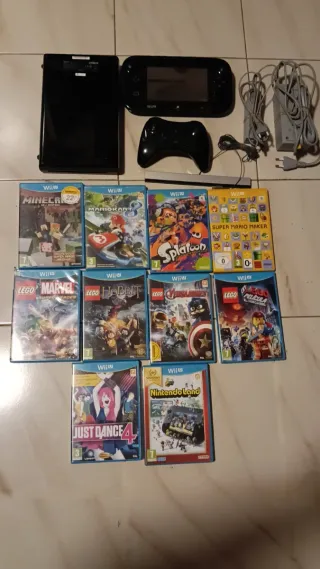 Vendo la Wii U originale in perfetto funzionamento con 2 controller Wii originali, 4 giochi in disco (Jett: Tailfin, Skylanders Swap Force, Wii Sports e Moto GP) e 10 giochi installati (Splatoon, M&S nei giochi olimpici, Mario Tennis, Mario Maker, Mario Party 10, Super Mario 3D World, New Super Luigi U, Angry Birds Trilogy e Darts Up). Ha tutti i caricatori originali, manca il cavo HDMI e il sensore di movimento (non necessario per i giochi Wii U, per quelli Wii, funziona puntando al gamepad). Per mantenere i giochi installati è necessario mantenere l'utente di 'qualcuno', ma possono essere utilizzati perfettamente su un altro utente.