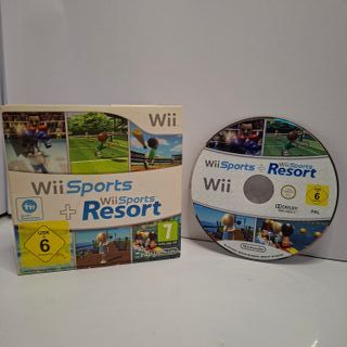 Wii Sport + Wii Sport Resort - Nintendo Wii Wii Sport + Wii Sport Resort in ottime condizioni perfettamente funzionante e testato. Multilingua, con confezione in cartone. Verrà accuratamente imballato prima della spedizione. N.B. la copertina in cartone ha qualche piccolo difetto estetico come si vede in foto e il disco presenta alcuni graffi sul retro, ma funziona perfettamente ed è stato testato. Per info scrivetemi.