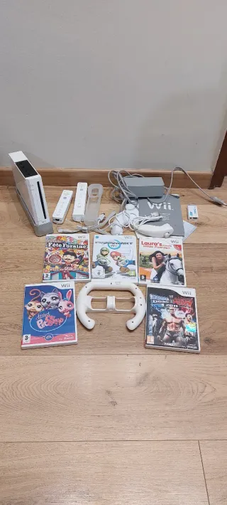 Vendo console Nintendo Wii completa di accessori e giochi. - Console Wii bianca - Controller Wii Remote e Nunchuk - Volante per Wii - Giochi inclusi: Fête Foraine, Mario Kart Wii, Laura's Passion: Il mio pony, Littlest Pet Shop, WWE SmackDown vs. Raw 2011