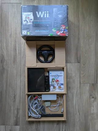 vendo mariokart wii pack con accessori compreso di: -volante nero -mario kart -console wii -controller wii con motion plus integrato -cavo alimentazione -cavo av -presa scart -barra sensore -libretti istruzioni tutto perfettamente funzionante