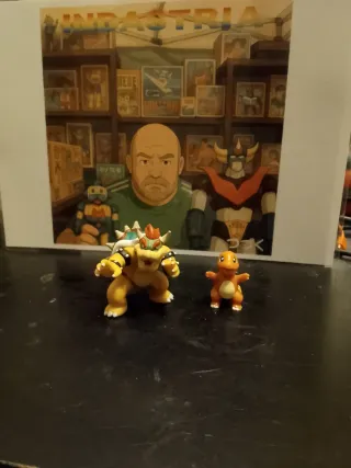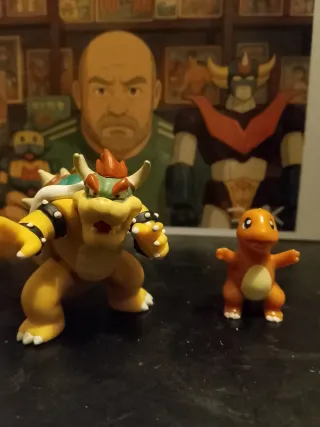 Due action figure dei personaggi Nintendo, Charmander e Bowser. - Charmander di colore arancione. - Bowser di colore giallo con dettagli neri e rossi.