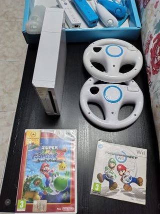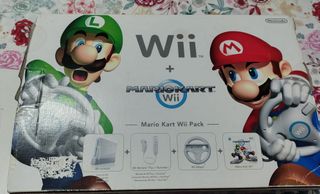 Console Nintendo Wii Mario Kart Pack, completa di accessori. - Console Wii - 2 Wii Remote Plus + Nunchuk - 2 sterzi Wii Wheel - Gioco Mario Kart Wii - Gioco SuperMario Galaxy 2 Funzionante ed in ottimo stato