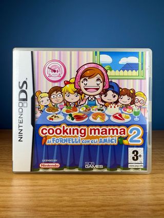 Gioco per Nintendo DS Cooking Mama. - Copertina con grafica a tema culinario. - Include la valutazione PEGI 3+.