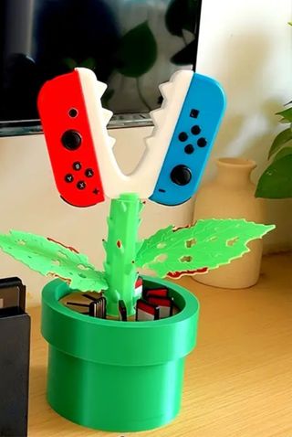 Supporto per controller Nintendo Switch, con un design ispirato ai personaggi dei videogiochi. - Supporto per Joy-Con. - Design a forma di pianta carnivora. - Colori rosso e blu.