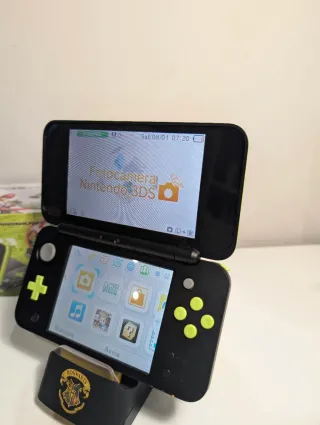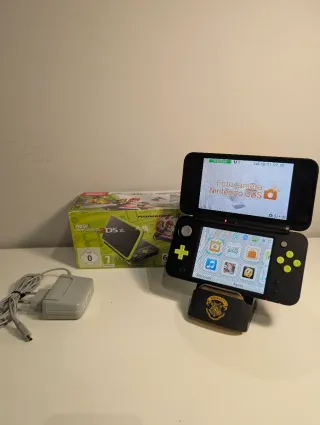 Console Nintendo 2DS XL di colore nero. - Console portatile. - Schermo superiore e inferiore. - Supporto di ricarica incluso. - Limited Mario kart edition - Praticamente Nuova
