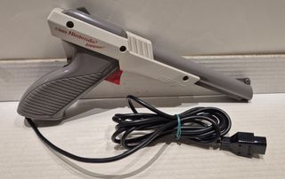 Accessorio per console Nintendo Nes , Pistola Lightgun Zapper. PERFETTAMENTE FUNZIONANTE OTTIME CONDIZIONI - Colore grigio - Anno di produzione: 1985 - Modello: NES-005 - Made in Japan.