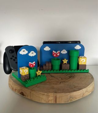 Supporto personalizzato per Nintendo Switch, ispirato al mondo di Super Mario. - Design a tema Super Mario con elementi iconici. - Adatto per Nintendo Switch, Switch OLED e Switch 2