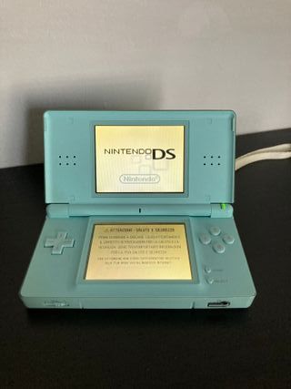 Console Nintendo DS Lite nella colorazione Ice Blue, d'importazione, acquistato appena uscito sul mercato, edizione giapponese. La console è completa e perfettamente funzionante, in buone condizioni e cerniera solida. Leggeri segni di utilizzo, come da foto, che non compromettono l'uso. Schermo inferiore protetto da pellicola (sono visibili 2 bolle nella foto) È region free, quindi legge giochi di qualsiasi provenienza senza problemi. Caricatore originale giapponese incluso. REGALO adattatore universale. Bundle : SCHEDA R4 con microSD da 2GB con 15 giochi inclusi Brain Training del Dr. Kawashima Nintendo DS Browser + RAM Pak 8GB