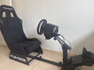 Vendo postazione da sim racing Playseat Challenge completa di volante Thrustmaster T150. - Sedile da corsa in tessuto nero con cuciture rosse. - Struttura pieghevole per un facile stoccaggio. - Volante con pedaliera inclusa. Vendo causa cambio postazione. Condizioni perfette. Scatole comprese. Prezzo trattabile. Per qualsiasi informazione non esitare a contattarmi!