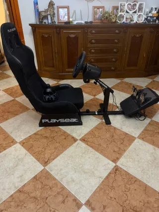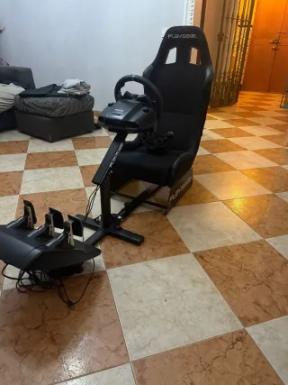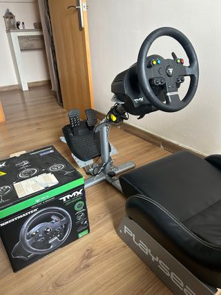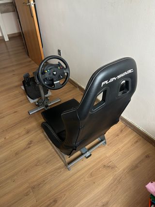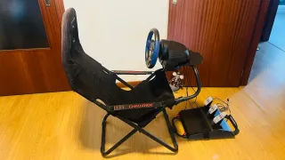 In vendita volante Thrustmaster con supporto Playseat Challenge. Ideale per simulatori di guida. - Volante Thrustmaster in stile F1 con leve. - Supporto Playseat Challenge pieghevole e regolabile. - Regalo rialzo in legno per pedaliera. Visibile e provabile a Valencia.