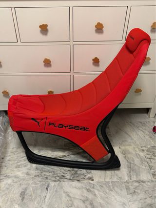 Sedile da gaming rosso con design sportivo. - Rivestimento imbottito. - Base nera. - Logo Puma e Playseat. - Sacchetti per riporre accessori come telefono, controller, ecc. NUOVO, mai usato, non è stato rimosso dalla confezione.