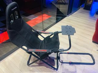 Sedia da simulazione di corse Playseat Challenge. - Struttura pieghevole e facile da riporre. - Sedile in tessuto nero. - Include supporto per volante e pedali. NON INCLUDE PEDALI E VOLANTI. Il tessuto è leggermente scolorito, ma è stata utilizzata solo 4 volte.