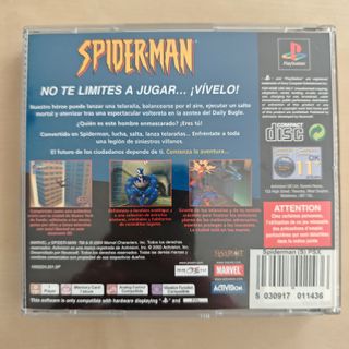 Videogioco Spider-Man per PlayStation 1 (PSX) versione Pal Spagna in ottime condizioni. Il CD è come nuovo senza alcuna marca. La scatola presenta solo alcune imperfezioni superficiali. La copertina e la controcopertina sono perfette. Anche il manuale è come nuovo. Gioco della mia collezione personale acquistato e giocato al lancio, poi conservato nelle migliori condizioni. Nelle recensioni del mio profilo potrai verificare che i miei giochi sono come nuovi e che effettuo le spedizioni con la massima cura possibile. Solo vendita, non accetto scambi.