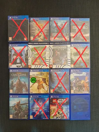 Collezione di videogiochi per Playstation 4. Tutti sigillati tranne quelli in basso. Include: *SIGILLATI* -Dark souls trilogy VENDUTO -It takes two VENDUTO -Hogwarts legacy VENDUTO -Digimon survive x1 16€ -Ufc 4 VENDUTO -Resident evil 2 VENDUTO -Resident evil 3 VENDUTO -Little nightmares 2 VENDUTO -Final fantasy type 0 11€ -Warhammer chaosbane 14€ -Gigantosaurus dino kart VENDUTO -Watch dogs legion 9€ *NON SIGILLATI* -Final fantasy X/X-2 VENDUTO -Biomutant 9€ -Lego star wars: la saga skywalker ❌️ -Dishonored 2 (senza copertina) 5€. In regalo scatola cartone brillante di Sonic Manía Plus con questo.