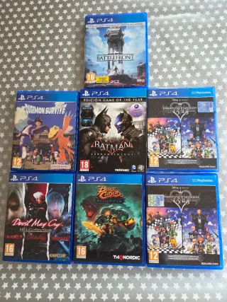 SPEDIZIONE SOLO. MINIMO 2 GIOCHI PER ACQUISTO. Giochi in perfetto stato. PAL ES. Codici riscattati. 7 dischi con 19 giochi. - Devil May Cry HD Collection (3 giochi in 1) - Battle Chasers: Nightwar - Kingdom Hearts 1.5 + 2.5 (6 giochi in 1). Ho 2 unità. - Digimon Survive - Star Wars Battlefront - Batman: Arkham Knight, Edizione game of the year. Prezzi dei singoli giochi nel mio profilo.