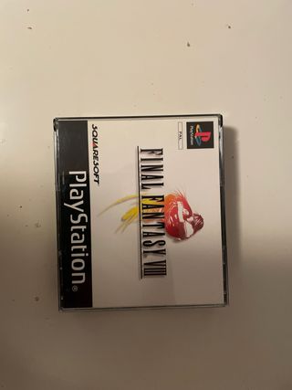 Videogioco Final Fantasy VIII per PlayStation 1. - Edizione PAL. - Sviluppato da Squaresoft. - Non include il manuale. - C'è un piccolo morso in un angolo della scatola. - I dischi funzionano perfettamente.