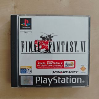 Videogioco Final Fantasy VI per PlayStation 1 in formato PAL. Include disco demo giocabile di Final Fantasy X (compatibile con PlayStation 2). Copertina con il logo di PlayStation e Square Enix. videogioco#console#retro#Nintendo#Gameboy#gioco#Sega#Offerta#GameCube#GB#playstation#Megaman#scatola#classico#divertente#antico#2Ds#3Ds#ocarina#zelda#megaman#super#mario#snowbros#famicom#dreamcast#NES#amibo#Metroid#Bros#Sonic#Snes#Ps1#Ps2#Ps3#Ps4#Psp#Slim