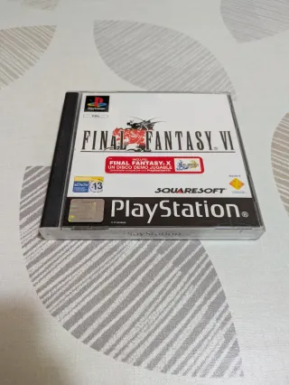 Videogioco Final Fantasy VI per PlayStation 1. Completo con manuale, disco e demo di Final Fantasy X per PS2. In perfette condizioni: i manuali hanno alcune tracce d'uso, ma la scatola è perfetta con gli adesivi originali e i dischi sono stati usati solo una volta. - Edizione PAL Spagna. - Include disco demo giocabile di Final Fantasy X. - Copertina e manuale in spagnolo.