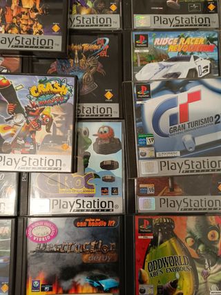 Collezione di giochi PS1 Platinum, la maggior parte in buone condizioni, persino impeccabili, tutti PAL ESP tranne Abe's Exoddus, che è PAL UK, più di 20 giochi e alcuni giochi per console essenziali, quasi tutti completi e in condizioni eccellenti, la GT2 non ha manuale. Sono venduti singolarmente o in set intero, con un regalo extra per completare il tema. Crash and Crash 3, C12, Toshinden, Tarzan, Tomb Raider, Abe's Odyssee, Soul Blade... tutti gioielli, chiedete in privato...