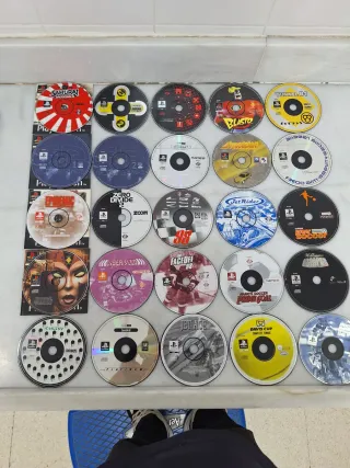Lot 50 videogiochi per PS1 Tutte le versioni PAL 🇪🇸 Tutto testato e funzionante Lotto indivisibile Alcuni hanno un manuale Alcuni hanno copertine e cover posteriori CD sciolti, non ho le scatole, viene fornito in una custodia, ci sono giochi come wipeout, wipeout 2097, parappatherapper, namco prime goal, loaded, blasto, samurai shadown 3, cardinal syn, Rosco, soul blade, batle arena toshiden, tray racers, nhl face off 98...