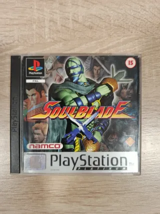 Gioco di combattimento Soul Blade per PlayStation 1. Il disco presenta solo alcuni graffi superficiali. - Edizione Platinum. - Formato PAL SPAIN - Include copertina e manuale in spagnolo.