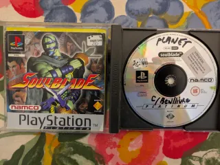 Gioco completo di Soul Blade per PlayStation 1 di Namco, edizione Platinum. Il gioco è in buone condizioni. - Include il gioco, la scatola e il manuale originali. - PlayStation Platinum Edition. - Perfetto per i collezionisti.