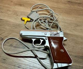 Vendo pistola ottica vintage Vivanco V-Play per Sony PlayStation 1, completa di scatola originale. • Condizioni: Buono stato estetico, segni di usura sulla confezione (vedi foto). • Funzionamento: Oggetto da collezione non testato (non dispongo di console e TV catodica). Venduto con formula "visto e piaciuto".