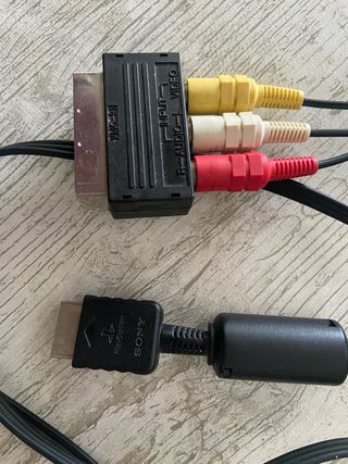 Cavo video e audio AV per PlayStation 1 e 2. - Connettore SCART a RCA. - Include cavi RCA (giallo, bianco, rosso).