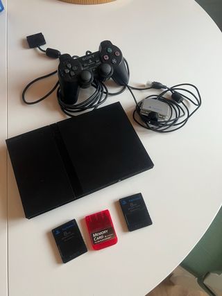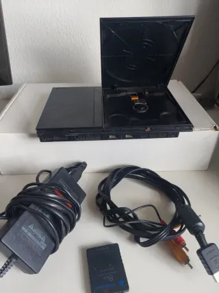 Vendo PlayStation 2 Slim in buone condizioni e perfettamente funzionante. Include: • Console PS2 Slim • Controller originale Sony • 3 schede di memoria • Fotocamera EyeToy • Cavi di alimentazione e connessione. Tutto funziona correttamente. Ideale per giocare ai classici di PlayStation 2. Si vende il pacchetto completo. Consegna a mano o spedizione tramite Wallapop.