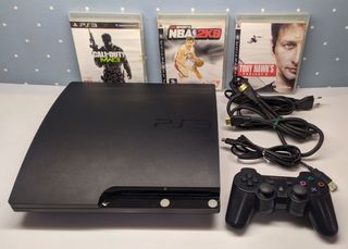 Consola PlayStation 3 Slim in colore nero, con pochissimo utilizzo. Il controller ha residui di alcune adesivi, non si notano al tatto né danno fastidio. Include controller e tutti i cavi necessari per il funzionamento. - Controller incluso. - Cavi di connessione alla TV. Giochi: 1. Fallout 3. 2. Killzone 3. 3. Prototype. 4. SBK09. 5. Tekken Tag Tournament 2. Si accettano offerte ragionevoli.