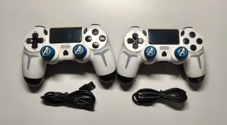 2 Controller wireless nuovi per PS4 - Mai usati 🎮 Compatibilità: PS4, PS3 e PC 🎯 Contenuto: include 2 controller e 2 cavi USB 🎁 Regalo incluso: 2 custodie protettive in silicone per joystick (versione speciale Avengers) 📦 Stato: completamente nuovo