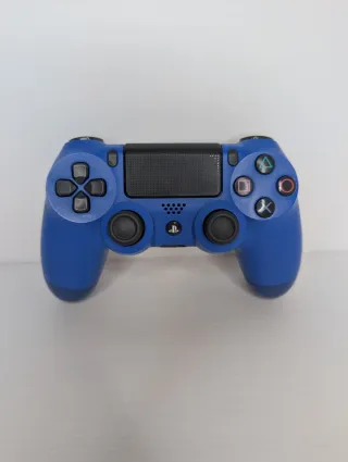 Controller originale Sony DualShock 4 V2 per PlayStation 4 modello CUH-ZCT2E in colorazione blu perfettamente funzionante in ogni suo tasto analogico e connessione wireless ma con un difetto al motorino della vibrazione sinistro che risulta scollegato a causa della rottura del supporto interno in plastica. L'oggetto è ideale per chi sa effettuare piccole riparazioni come incollaggio del supporto e saldatura del filo o per chi gioca abitualmente senza vibrazione attiva mantenendo un controller esteticamente in buone condizioni e reattivo al 100% nei comandi di gioco.