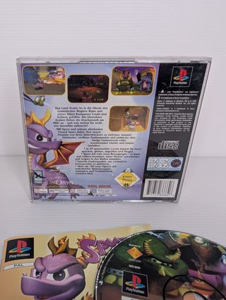 Videogioco Spyro 2 Gateway to Glimmer per PlayStation 1 originale versione PAL completo di custodia e manuale. Il software è multilingua e include la lingua italiana, nonostante la copertina posteriore e il libretto presentino testi in tedesco. Il gioco è testato e perfettamente funzionante con disco in ottime condizioni estetiche e custodia originale integra.